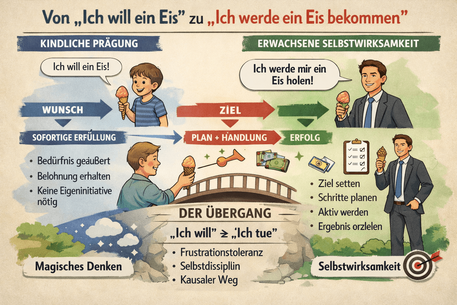 „Ich werde mir ein Eis kaufen.“ → Selbstwirksamkeit + Handlung.